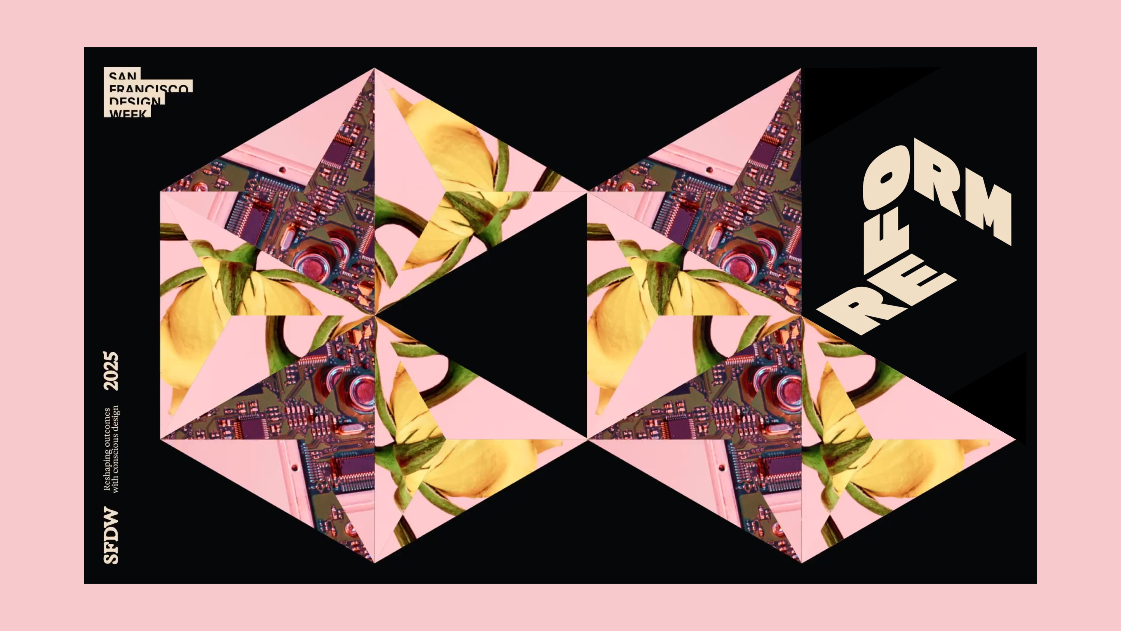 Pact partnered with San Francisco Design Week (SFDW) to create the 2025 theme "Reform," recognizing the Bay Area's position at the forefront of design innovation and its power to shape the future. Drawing from the understanding that designers fundamentally reshape how humans interact, behave, and thrive, Pact developed "Reform" as an invitation to examine our relationship to past and present while investigating which processes, structures, materials, beliefs, behaviors, and systems need transformation. The resulting theme challenges the design community to embrace their role as agents of meaningful change, asking when something needs incremental updates versus complete overhaul. Reform positions SFDW 2025 as the festival where conscious design meets long-term thinking—the perfect platform for reshaping outcomes that impact society and culture.